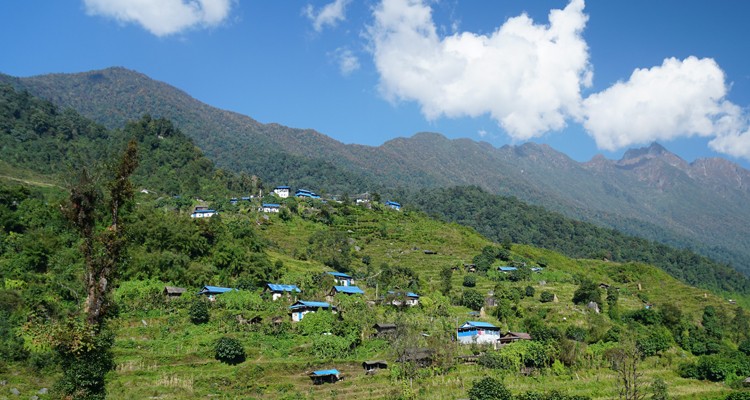 C'est une belle journée de marche aujourd'hui sans les montées et descentes brutales d'hier. Vous commencez à grimper sur un chemin avec de nombreuses marches en pierre et passez plusieurs murs de mani en vous dirigeant vers le pays sherpa. Vous traversez de nombreuses petites fermes disséminées à flanc de colline, des plantations de cardamome et des forêts de bambous et de rhododendrons. C'est certainement une promenade variée et vallonnée aujourd'hui. Après environ deux heures, vous atteignez le petit village de Chyaksa Danda à 1 900 m. Il y a un magasin de thé, une école et plusieurs maisons ici. Vous entendrez peut-être des barbets, des coucous, des drongos et des grives qui rient crier à travers les arbres. À certains endroits, vous traversez une forêt dense et devez traverser quelques ruisseaux sur de bons ponts en rondins. Vous pouvez voir votre destination, Tashigaon, sur la colline devant vous, même si cela prend plus de temps que vous ne le pensez pour arriver, car vous contournez un chemin vallonné. Finalement, vous descendez vers un pont en rondins juste avant votre dernière poussée sur des marches en pierre pour atteindre Tashigaon. Les lodges sont tous perchés au sommet, vous avez donc un peu d'escalade à travers le village pour gagner votre dal bhat !