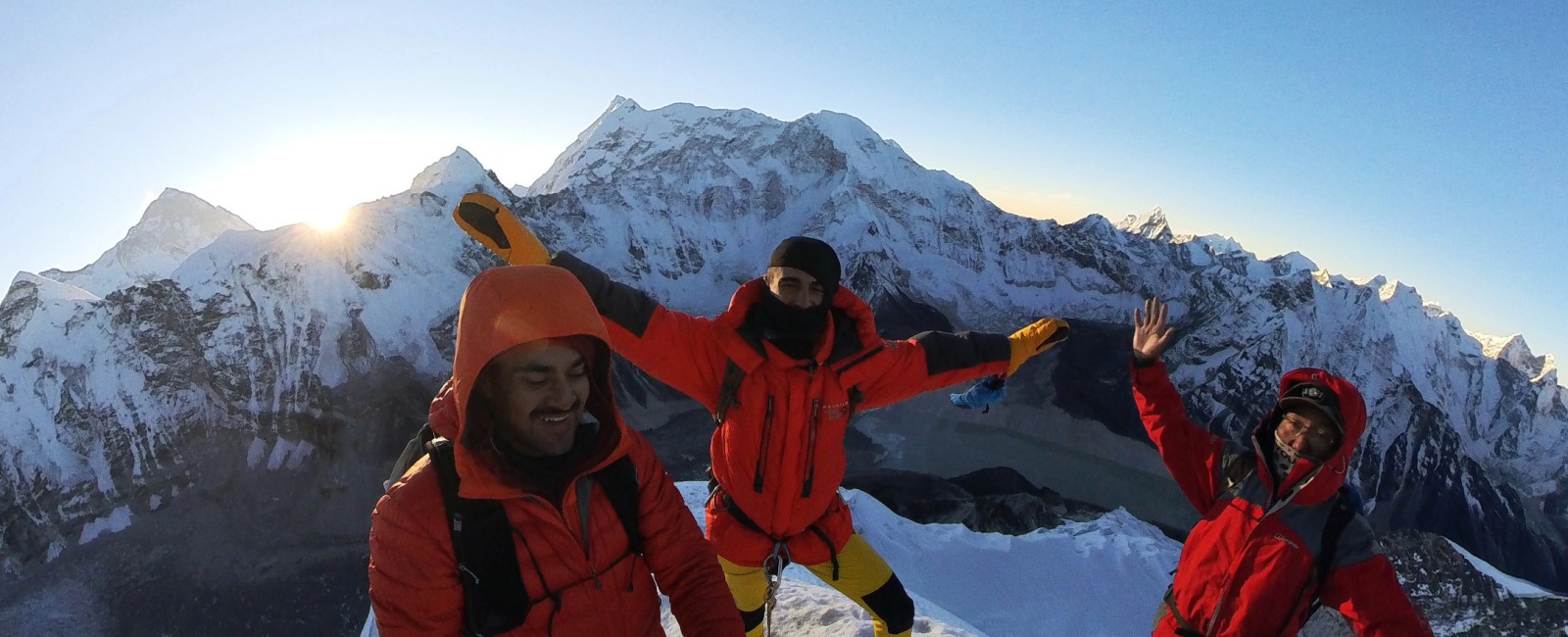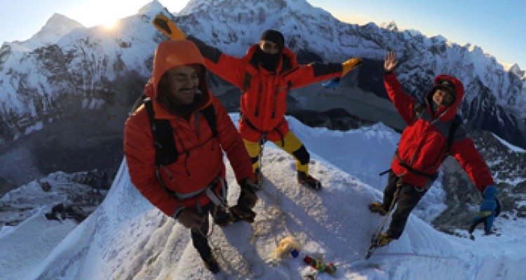 Bien que Island Peak ne nécessite pas d'expertise technique, il nécessite cependant de la force et de l'endurance. Cela nécessite cependant quelques compétences de base et comment éviter les accidents. Il est essentiel que nous atteignions le sommet avant le déjeuner, car l'après-midi, il peut y avoir beaucoup de vent. Le chemin monte sur des centaines de mètres depuis le camp du bas avant de faire face à une forte pente initialement sur un sentier sablonneux avant de se transformer en herbe, et enfin sur des rochers. Le chemin finit par se rétrécir avant d'entrer dans une vallée rocheuse escarpée (chenal rocheux étroit). Enfin, après de nombreuses marches à travers et à travers la vallée, nous émergeons de l'autre côté. Votre guide, pour des raisons de sécurité, peut fixer une corde à chaque grimpeur pour l'aider à gravir la dernière pente enneigée jusqu'à la crête au sommet. La corde peut souvent s'étendre jusqu'à 350m selon la saison et le danger de crevasses. Certaines de ces crevasses peuvent atteindre 2 à 3 mètres de diamètre nécessitant l'utilisation d'échelles. Une fois au sommet, il est temps de sortir votre appareil photo et de capturer les vues magnifiques et de reprendre votre souffle !. Nous descendrons ensuite vers le camp de base d'Island Peak et, avec vos guides, célébrerons notre succès. Repas - petit-déjeuner, déjeuner et dîner.