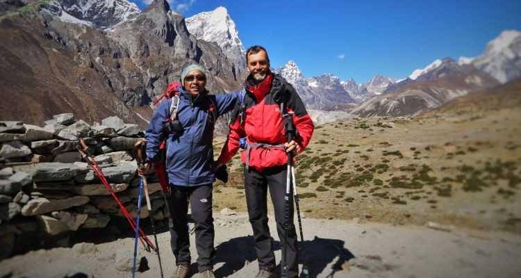 Après le petit-déjeuner, notre randonnée commence par une marche facile vers Thukla avant de traverser la moraine terminale escarpée du glacier de Khumbu, puis de traverser les pentes parsemées de rochers en montant Chupki Lhara où nous trouvons des groupes de pierres avec des drapeaux de prière placés par Sherpas comme un mémorial à Scott Fischer (alpiniste américain), 10 fois sommet de l'Everest Babu Chiri Sherpa (guide de montagne népalais Sherpa) qui a péri lors d'une mission d'ascension du mont Everest. Le chemin continue ensuite vers la moraine du glacier Khumbu et devant nous se trouvent de nombreux sommets magnifiques - Khumbutse, Lingtren et Mahalangur Himal. Nous passons la nuit à Lobuche. Petit-déjeuner, déjeuner et dîner inclus