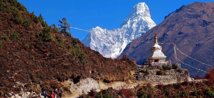 Cette randonnée dans la vallée de Gokyo est extraordinaire à tous points de vue. Les lacs de Gokyo sont des lacs glaciaires au nombre de cinq. Les vues de la région du cinquième lac sont superbes et l'ascension du Gokyo Ri , un sommet à 5200m procure une expérience unique. Le Gokyo Ri est l'un des pics les plus populaires de randonnée d'où l'on a la meilleure vue sur les sommets du massif , l'Everest, le Makalu, le Loste, le Nupste, le Choyu, etc...Le trekking au camp de base de l'Everest est l'un des plus célèbres treks du Népal. Pour commencer, nous volons vers Lukla. Puis nous marchons à travers des vallées verdoyantes dotées d' une flore et d'une faune abondante, dans le du pays des amicaux et légendaires Sherpa , parsemées de monastères bouddhistes en activité disséminés dans le Parc National de Sagarmatha (Everest) .Le trek du camp de base de l' Everest est non seulement célèbre pour sa proximité du plus haut sommet du monde mais également pour son peuple Sherpa.